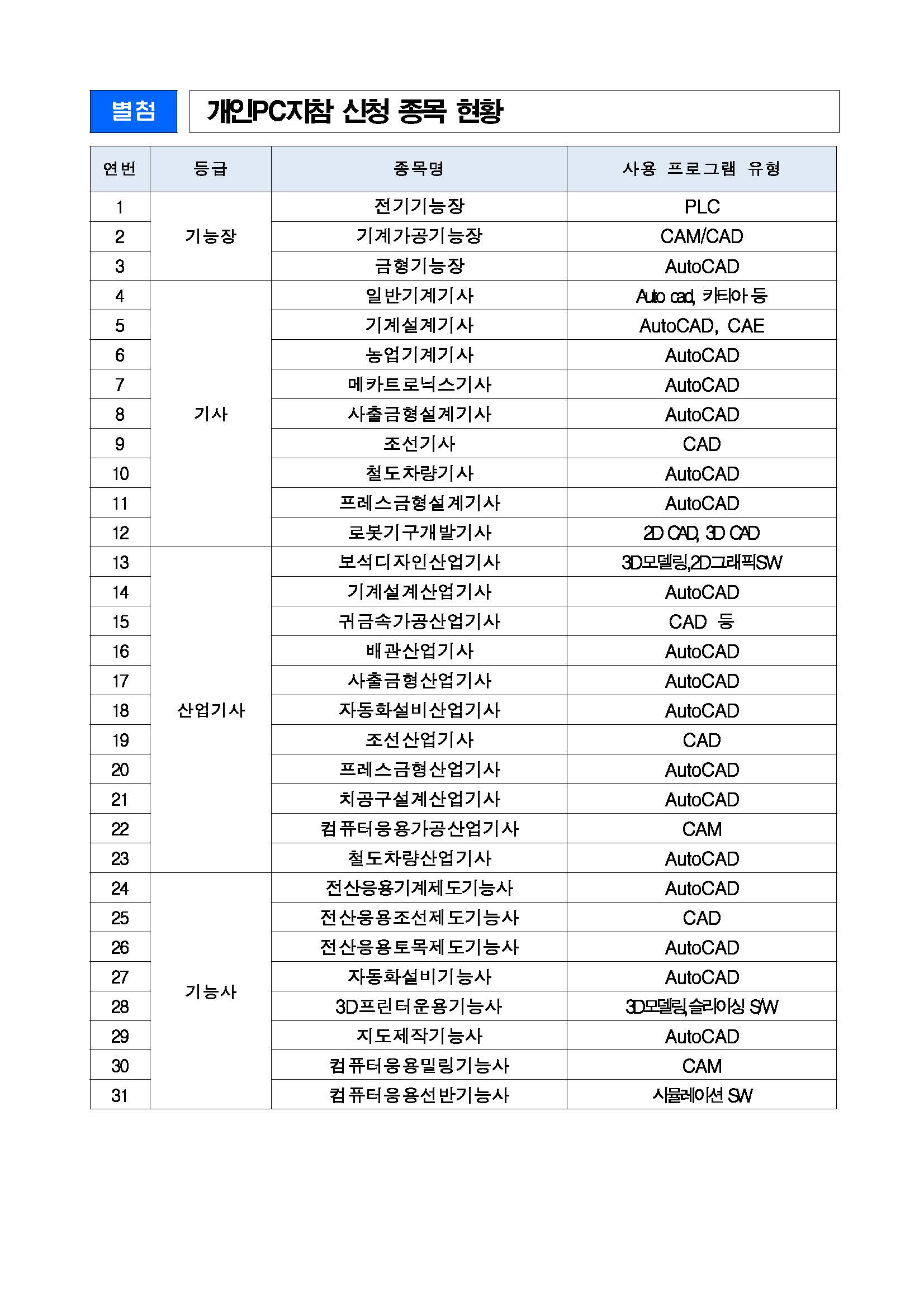 * 시설장비목록이 등록되지 않은 시험장(작업형)은 해당 시험장 관할 한국산업인력공단 지부, 지사로 문의 부탁드립니다. |