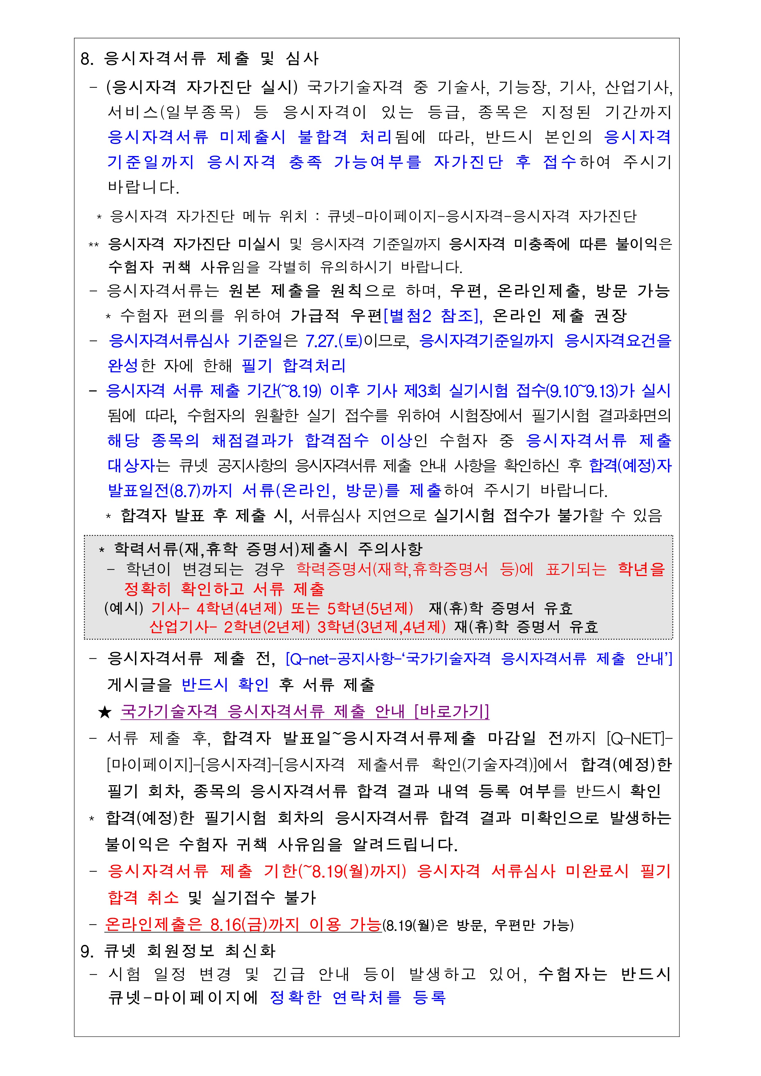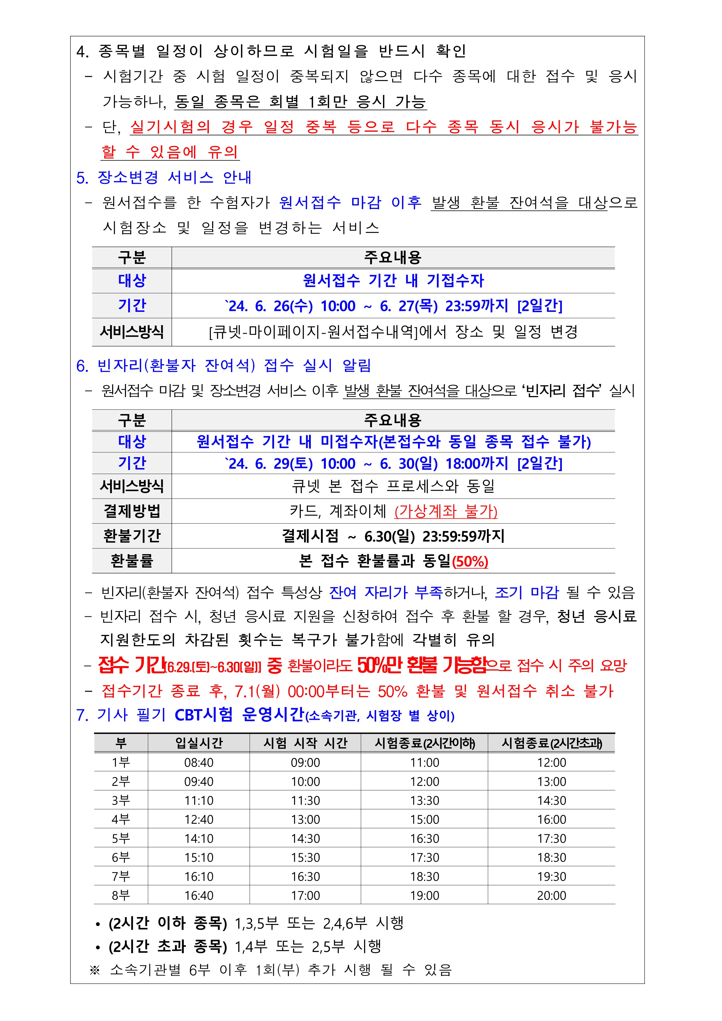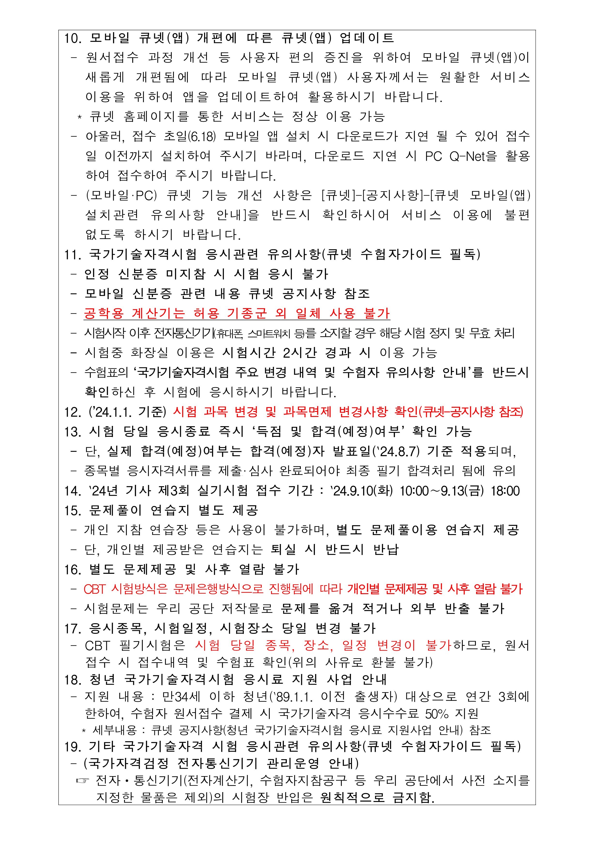 2024년도 기사 제3회 필기시험 원서접수 주요 안내사항