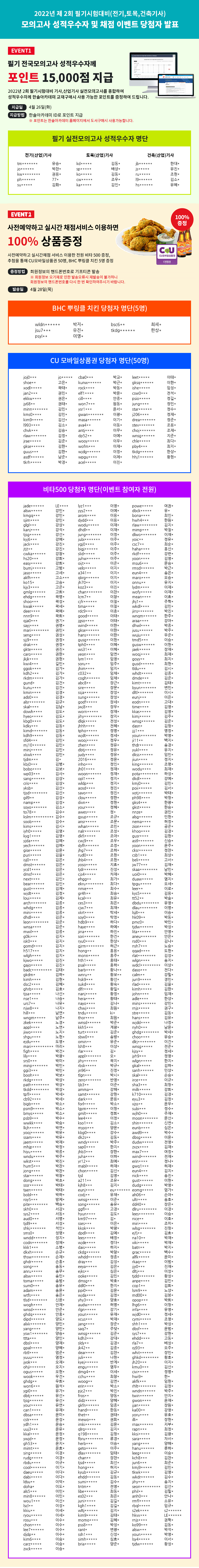2022년 2회 건축,전기,토목기사필기 모의고사 성적우수자 및 실시간 채점이벤트 당첨자 발표