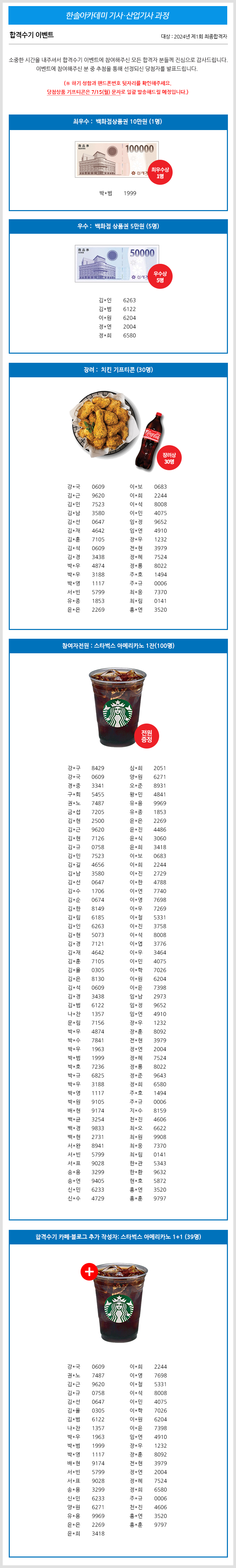 2024년 제1회 건축/전기/토목/건축설비/공조냉동기계(산업)기사 합격수기 이벤트 당첨자 발표